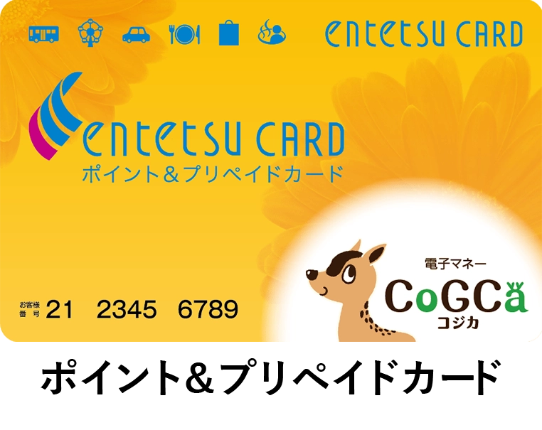 えんてつカードのクレジット・CoGCa(コジカ)払い・現金でのお支払い100円(税抜)毎に1ポイントをおつけします。
